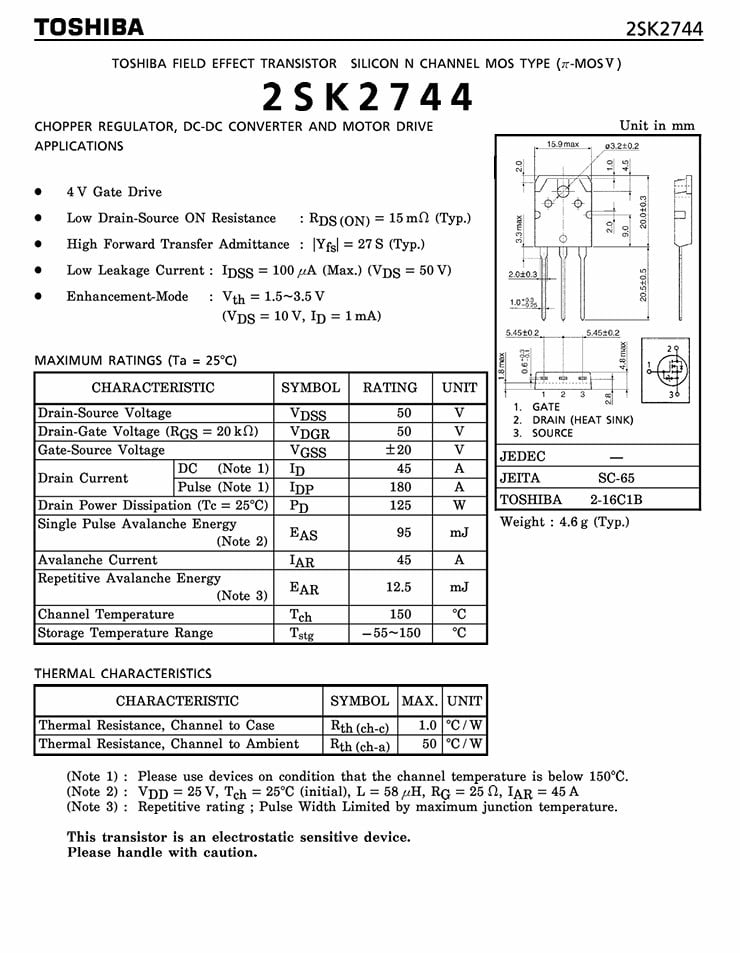 2SK2744 TO-3P 45A 50V N-CHANNEL MOSFET