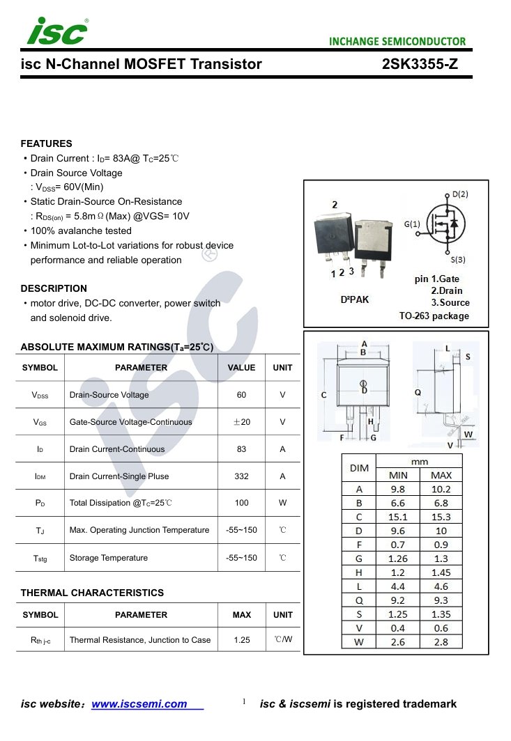 2SK3355 TO-263-3 D2PAK 60V 83A N-CHANNEL MOSFET