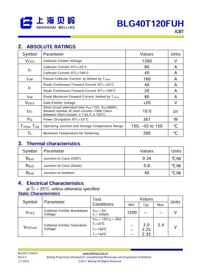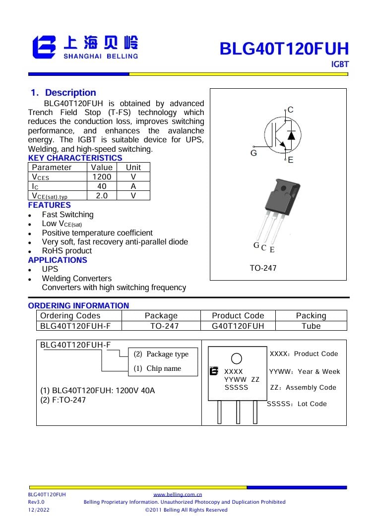 BLG40T120FUH TO-247 80A 1200V 555W