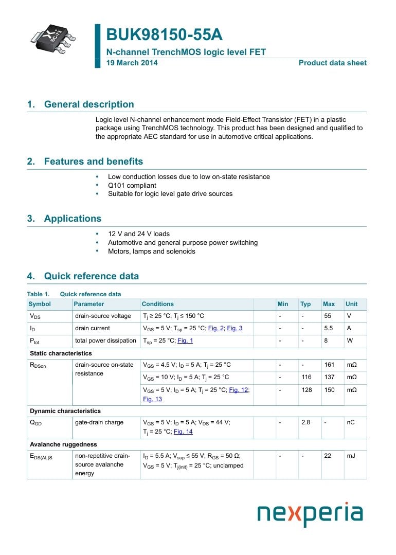 BUK98150-55A SOT223-3 5.5A 55V N-CHANNEL TRENCH MOS LOGİC LEVEL FET