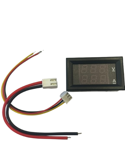0-100V Voltmetre 0-10A Ampermetre özelliğine sahip modüldür. 3 hane ve kırmızı renkte voltmetre göstergesi üst kısımdadır. 3 Hane ve mavi renkteki akım göstergesi alt kısımdadır.