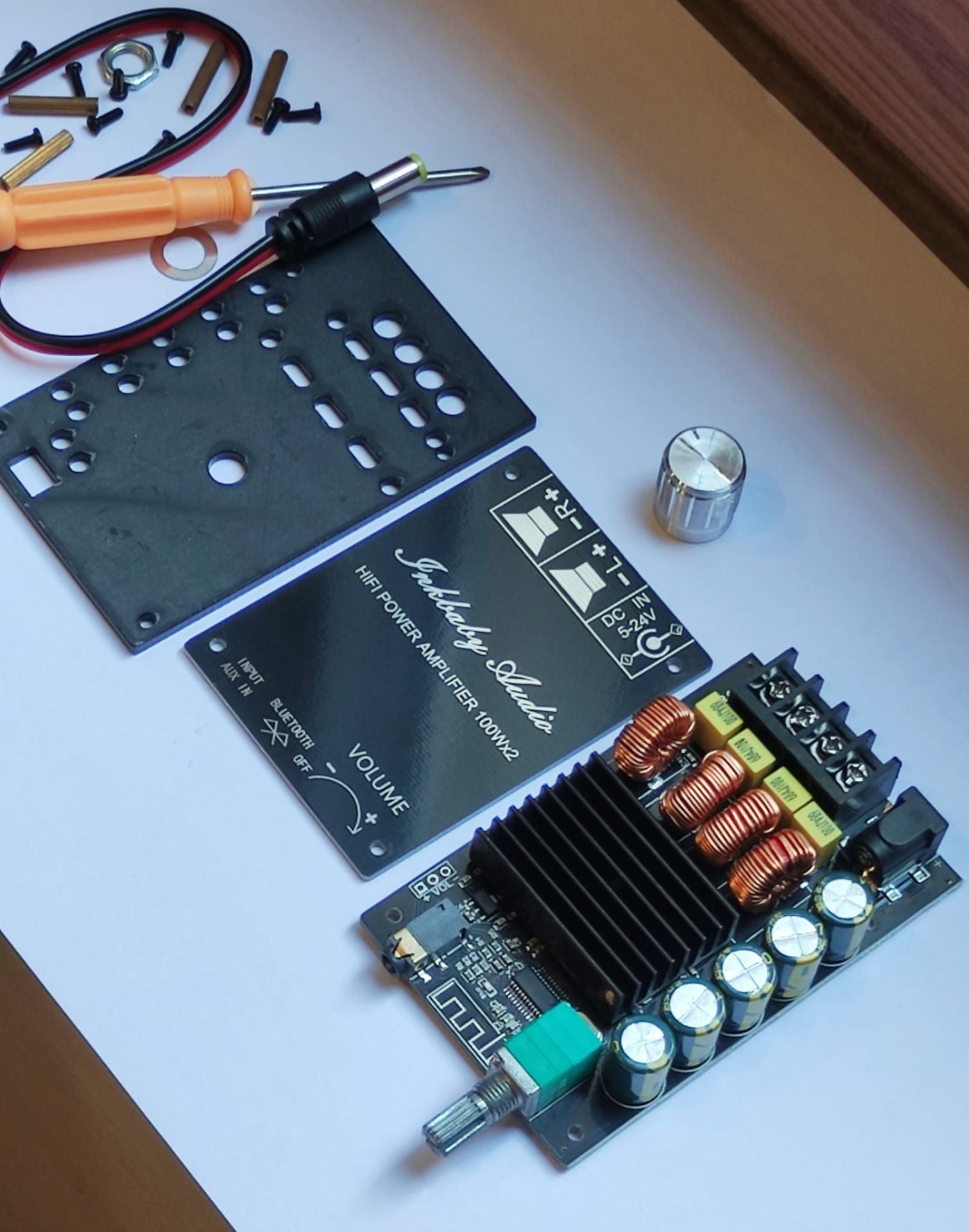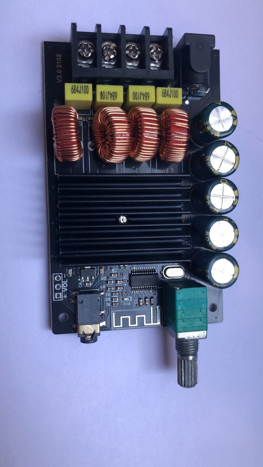 ZK-1002L 2x100W 5.0 Bluetooth Stereo Amfi Devresi, 5.0 Bluetooth sürümüne sahip 2x100 W gücünde bir amfi devresidir. Devre üzerinde 2.1mm adaptör girişi sayesinde güç beslemesi kolayca yapılabilmektedir. Yine devre üzerinde yer alan potansiyometre ile ses ayarı yapılabilmektedir. 5.0 versiyon bluetooth teknolojisi sayesinde yaklaşık 15 metre iletim mesafesine sahiptir.