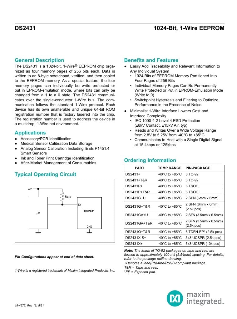 DS2431+T&R TO-92 EEPROM 1024-BİT 1-WİRE EEPROM