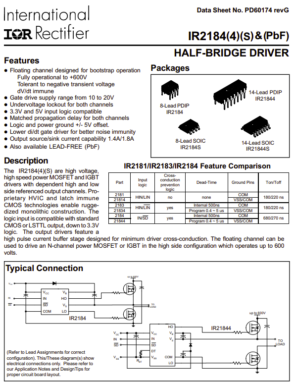 IR2184PBF DIP-8 PMIC - POWER MANAGEMENT IC