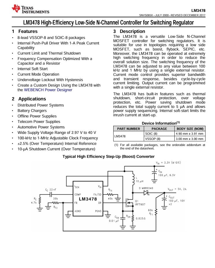 LM3478MAX/NOPB HİGH-EFFİCİENCY LOW-SİDE N-CHANNEL CONTROLLER FOR SWİTCHİNG REGULATOR