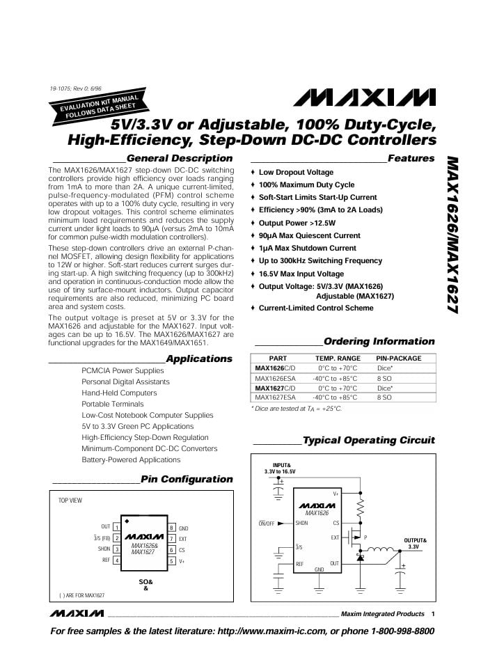 MAX1626ESA SOIC-8 5V/3.3V OR ADJUSTABLE, 100% DUTY-CYCLE, HİGH-EFFİCİENCY, STEP-DOWN DC-DC CONTROLLERS