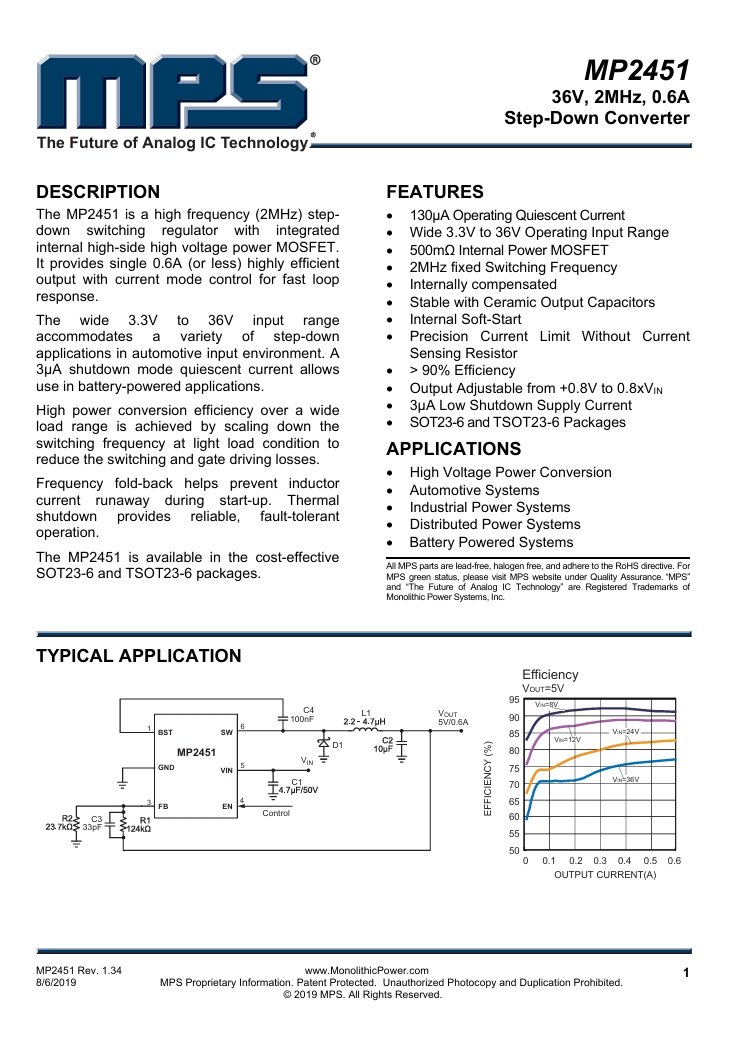 MP2451 36V, 2MHZ, 0.6A STEP-DOWN CONVERTER