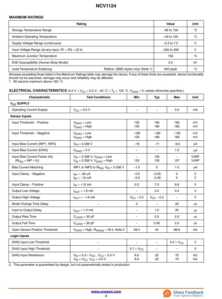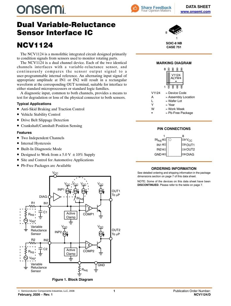 NCV1124DR2G SOIC-8 Dual Variable‐Reluctance Sensor Interface IC