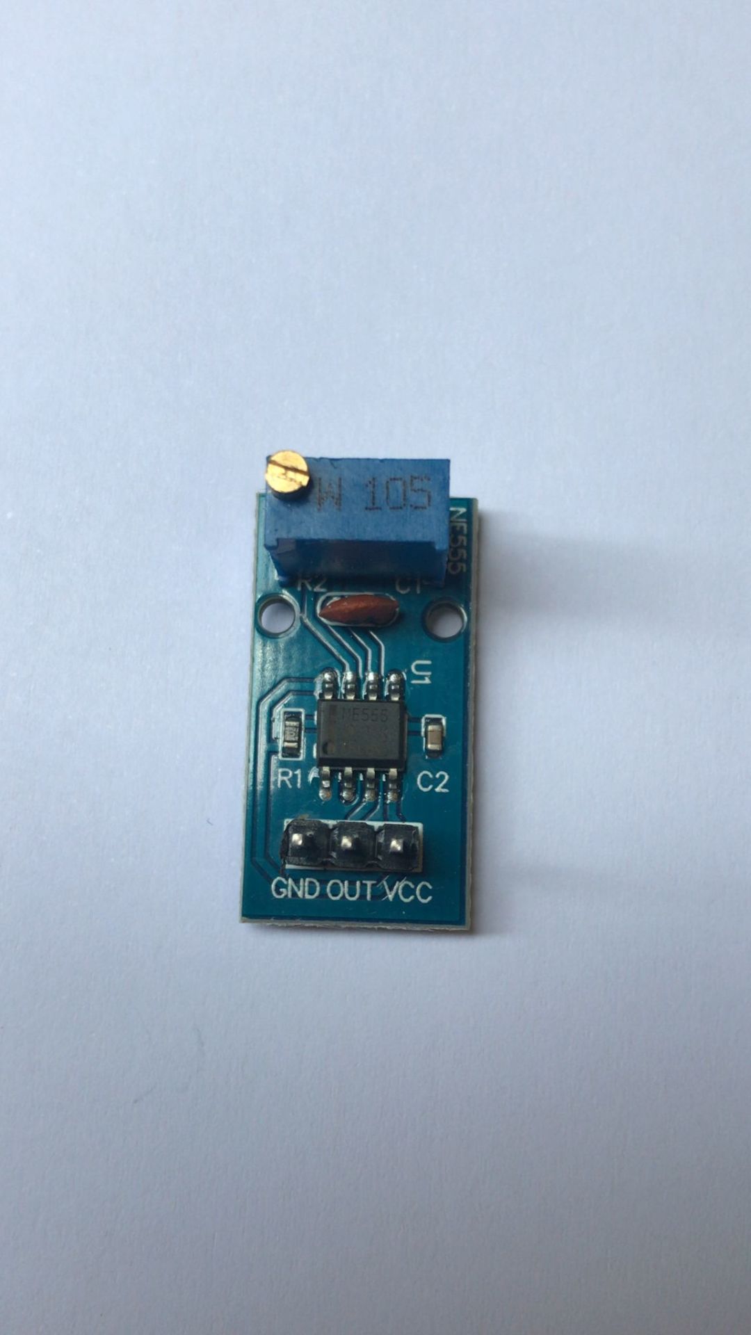NE555 Ayarlanabilir Pulse Kare Dalga Osilatör Modülü, duty cycle’ı ve frekansı üzerindeki trimpot ile ayarlanabilen, tek kanallı bir modüldür.