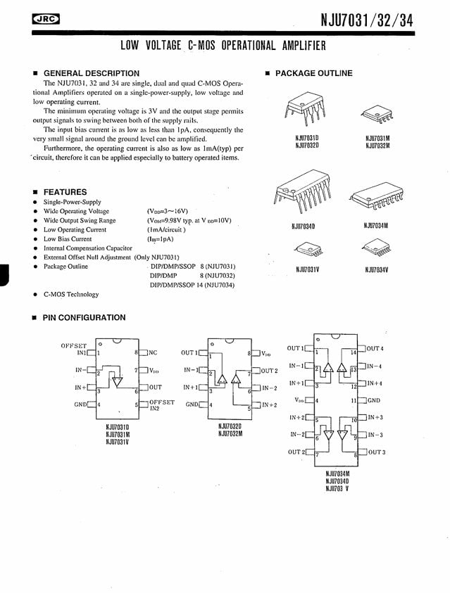 NJU7032M(TE1) SOIC-8 LOW VOLTAGE C-MOS OPERATIONAL AMPLIFIER