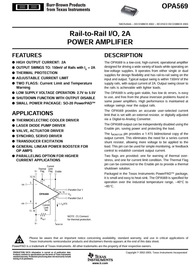 OPA569AIDWPR SOIC-20 RAİL-TO-RAİL I/O, 2A POWER AMPLIFIER