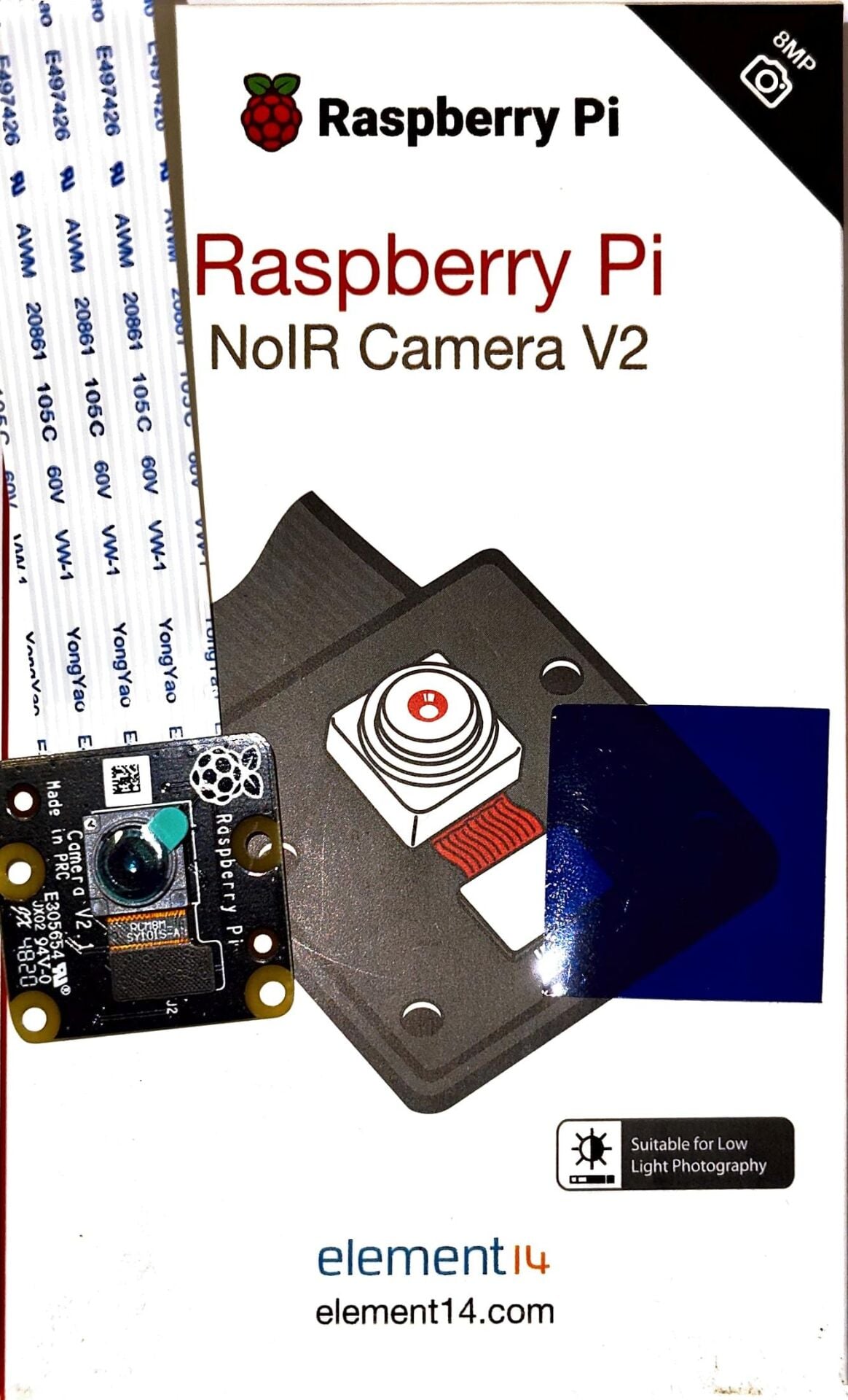 Bu kamera modülü Sony IMX219 görüntü sensörü ve özel sabit odak lense sahiptir. NoIR kamera üzerinde düşük ışıklı ortamlarda harika fotoğraflar çekmenizi sağlayan No InfraRED filtre de bulunmaktadır.