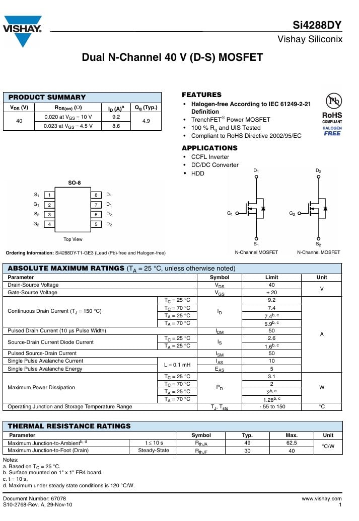 SI4288DY-T1-GE3 SOIC-8 DUAL N-CHANNEL 9.2 A 40 V (D-S) MOSFET