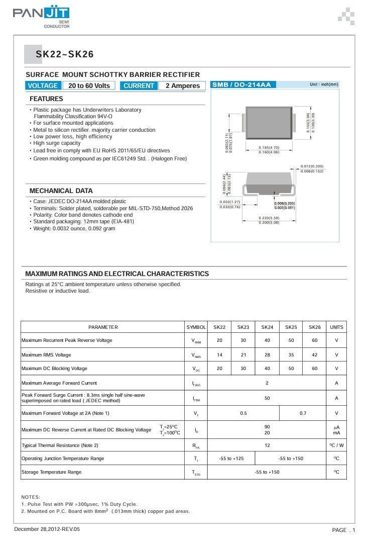 SK26_R1_00001 DO-214AA (SMB) 2A 60V SCHOTTKY BARRIER RECTIFIER DIODE