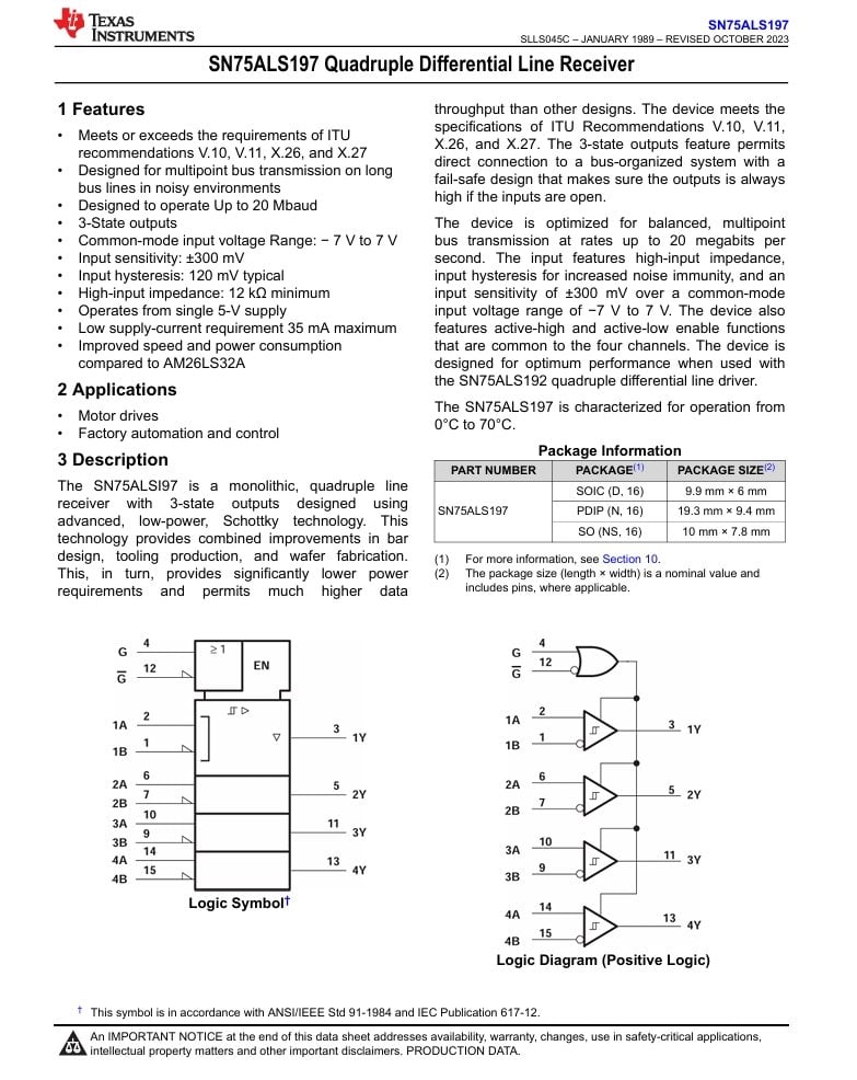 SN75ALS197DR SOIC-16 QUADRUPLE DİFFERENTİAL LİNE RECEİVER