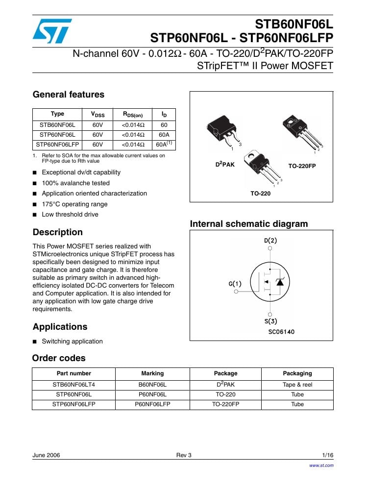 STB60NF06LT4 TO-263-3 60A 60V N-CHANNEL MOSFET