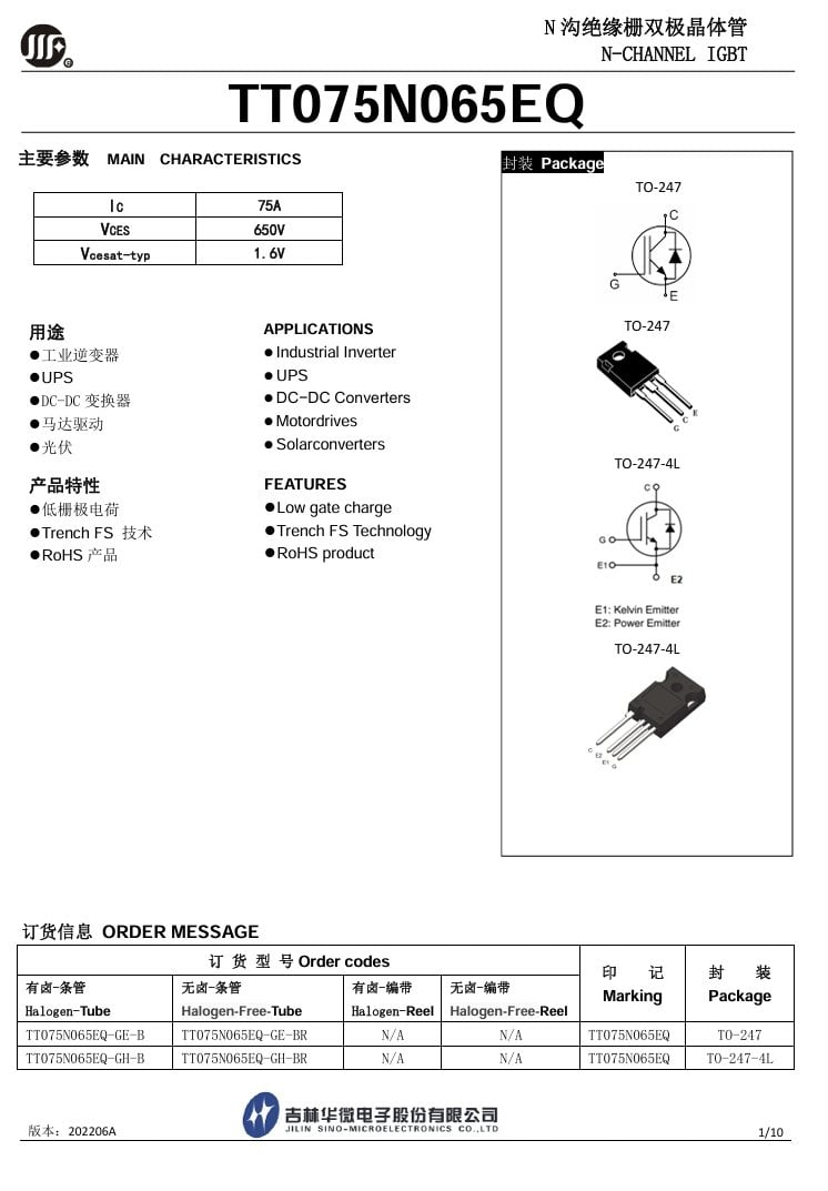 TT075N065EQ TO-247 IGBT + ANTİ-PARALEL DİYOT IGBT N- KANAL