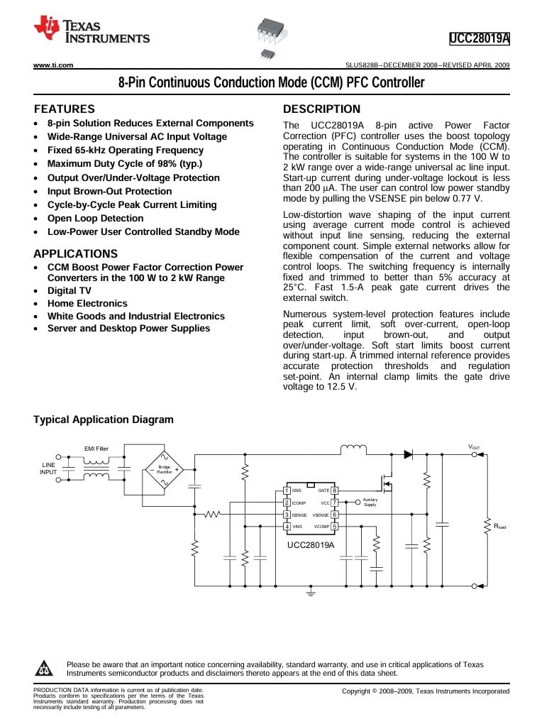 UCC28019ADR SOIC-8 SMD CONTİNUOUS CONDUCTİON MODE (CCM) PFC CONTROLLER